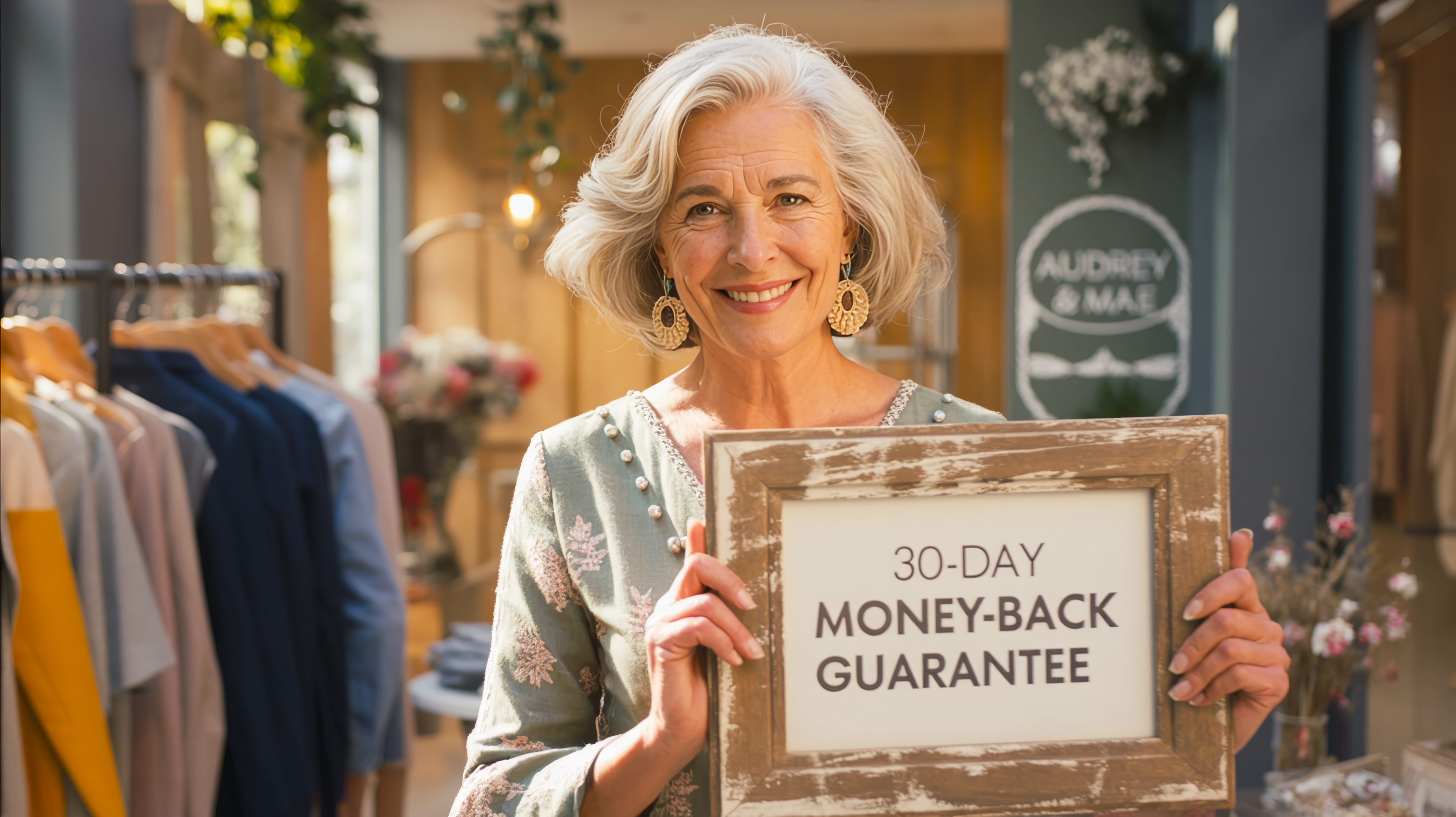 We truly believe in the quality of our clothing and we’re confident you’ll love it too. That’s why every purchase comes with a 30-day money-back guarantee.